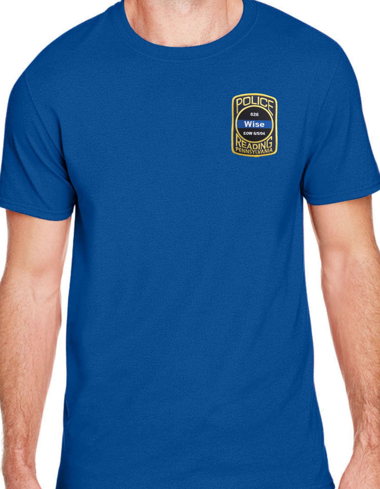RPD Officer Wise Commemorative T-shirt honors Officer Wise. This brave officer was killed in the line of duty June 5, 2004. This is a limited time offering in partnership with the Reading Police Department Mobile Unit to help them support Law Enforcement United.